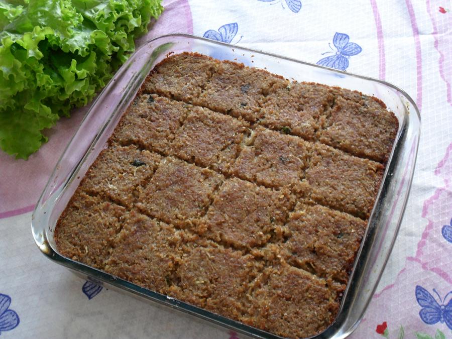 Cubra com o que sobrou da massa.Pincele uma gema sobre o quibe.