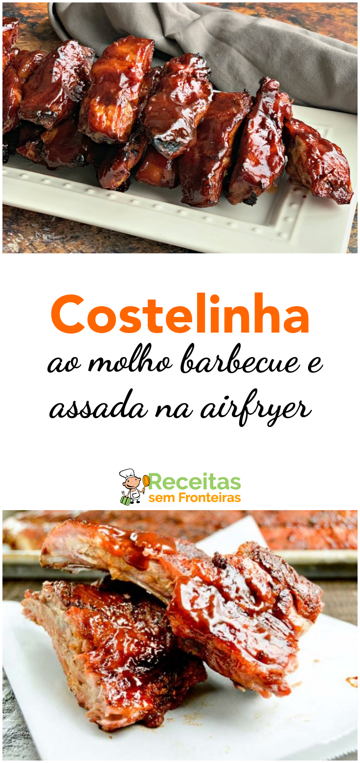 Após marinar, retire as costelas do saquinho e coloque na cesta da AirFryer, depois pincele generosamente com molho barbecue como nas imagens abaixo. Programe a AirFryer por 35 minutos à 200°, na metade do tempo vire as costelinhas e pincele com mais molho barbecue.