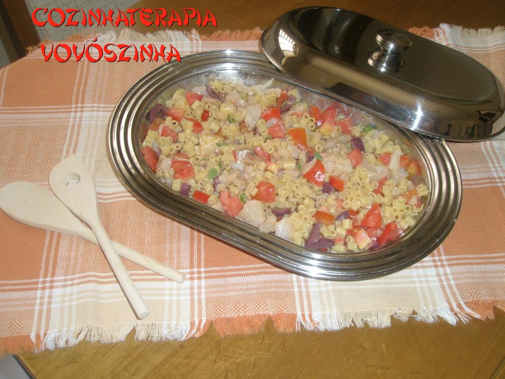 Em uma panela com água fervente, salgada e abundante, cozinhe o risoni al dente. Escorra, adicione parte do azeite e junte o bacalhau em lascas, misture bem e deixe esfriar. Adicione o tomate em cubos, as folhas de manjericão, as raspas de limão e, por último, as tirinhas de azeitonas pretas. Acerte o tempero e finalize com mais azeite. Sirva resfriado como salada.