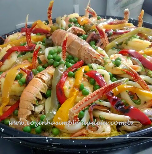 Obs: Essa é a paella que eu faço, não é a típica paella espanhola, primeiro porque não vai ervilhas na paella, mas eu gosto e coloco.