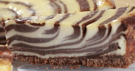 A versão torta do famoso bolo zebra! Você pode inovar nos recheios para obter outras cores e resultados! Esta leva chocolate branco e meio amargo, uma delícia, além de ter um efeito surpreendente ao cortar!