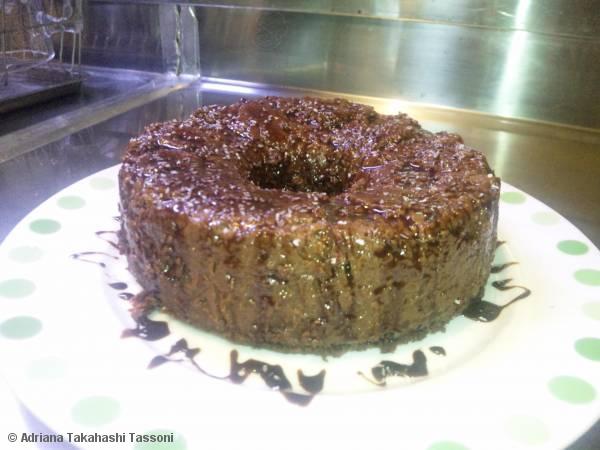 Tire do forno e deixe esfriar por 2 horas, desenforme o pudim gelado em um prato de servir