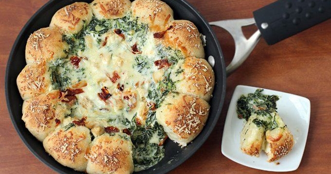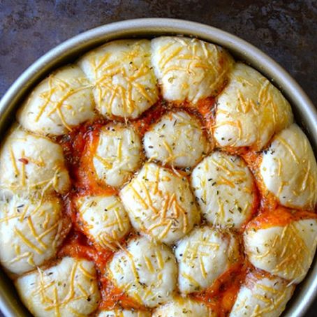 Uma ideia fantástica e deliciosa! Uma rosca de pizza, pequenos bolinhos de massa de pizza recheados com pepperoni, muçarela e molho, dispostos em uma forma e assados! Para comer rezando!