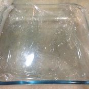 Depois coloquei a mistura aí dentro e cobri com mais papel filme. Apertei beeeeeeem muito para compactar bastante a massa.
