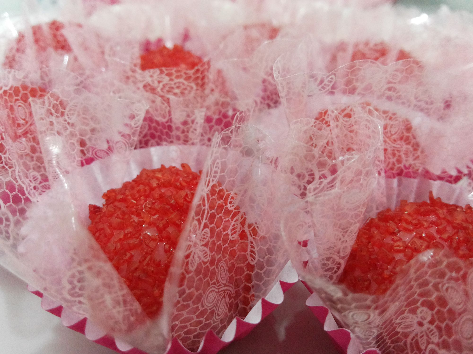 Brigadeiro de morango, também conhecido como bicho de pé.
