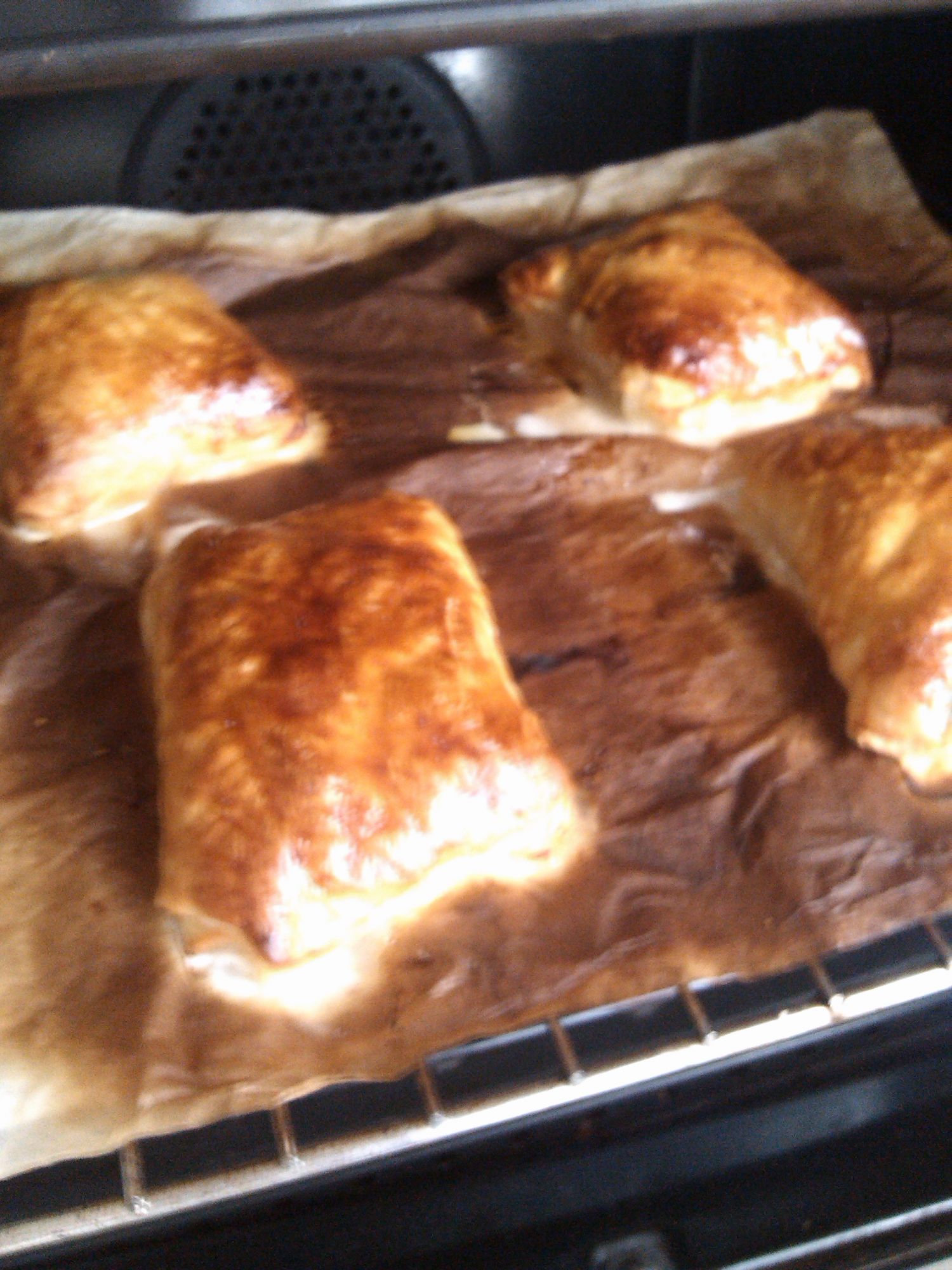 Lombos de peixe recheados com mortadela de azeitonas e queijo com massa folhada