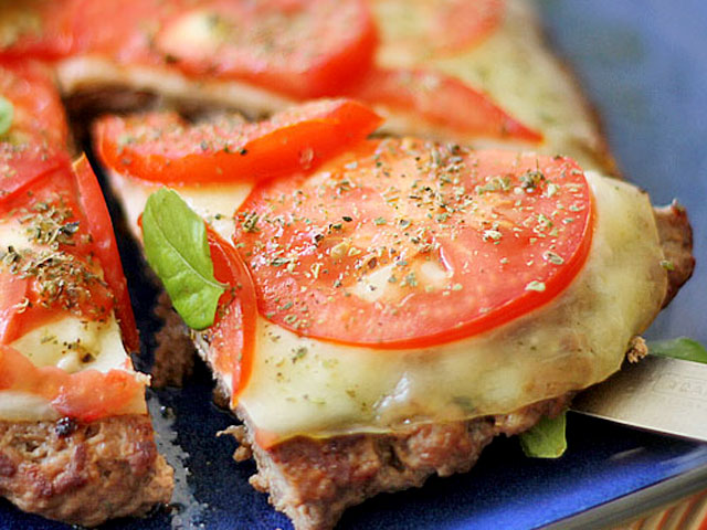 Unte uma forma de pizza (tamanho tradicional) e coloque a carne moída como se fosse a massa da pizza, bem fininha, asse no forno em fogo médio por 10 minutos.