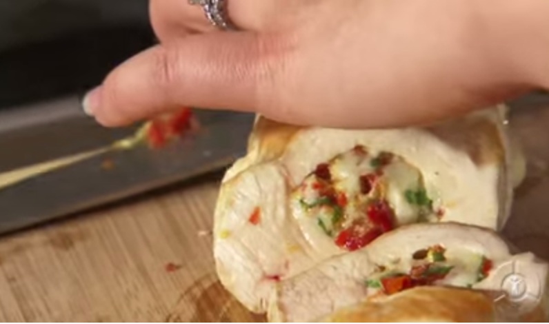 Receita deliciosa e suculenta de sobrecoxa desossada recheada com tomate seco e peito de peru.
