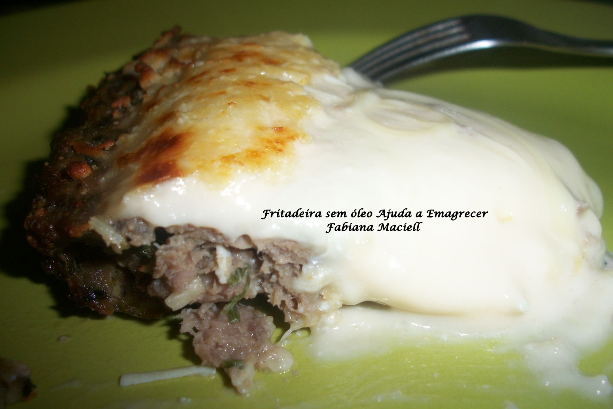 Torta de carne moída com molho branco e queijo na na Fritadeira sem óleo