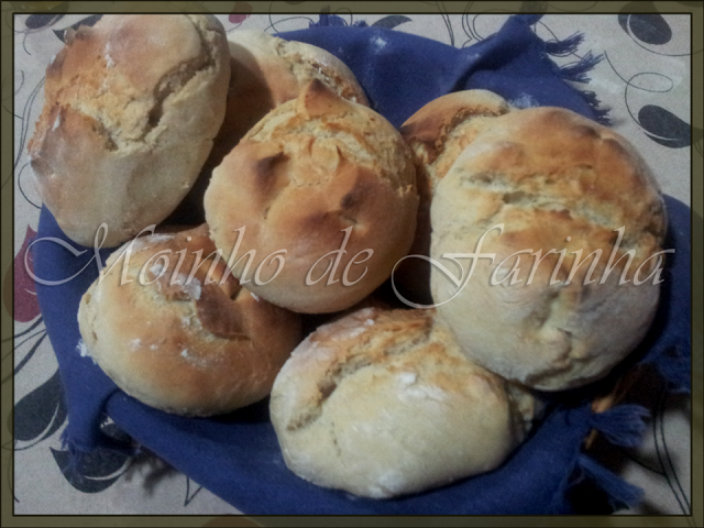 Utiliza o programa "massa" da máquina de fazer pão automática. Depois de o programa terminar, coloca-se a massa na banca de cozinha polvilhada com farinha. A partir daí basta formar pequenas bolas e colocá-las num tabuleiro polvilhado com farinha, levando ao forno convencional a 180°C por 20-30 minutos (aprox.). Pode-se fazer, com a ajuda de uma tesoura de cozinha, cortes em "x" na parte de cima de cada bola de pão antes de ir ao forno, para lhes dar o aspeto apresentado abaixo, nas fotos. O resultado são uns pães bem fofos e bem apetitosos!