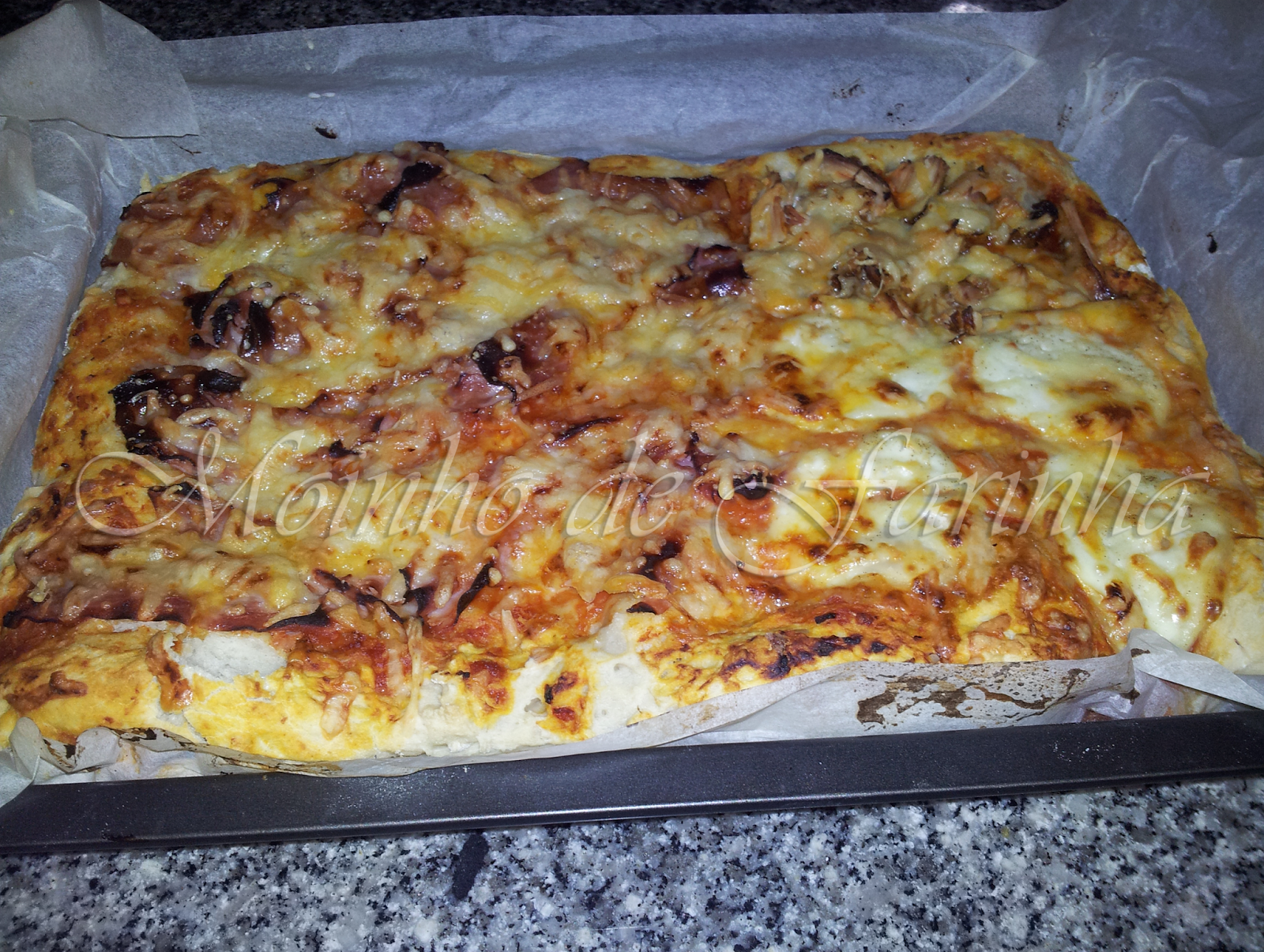 Para a "pizza cá de casa" eu dividi o recheio em quatro partes:
