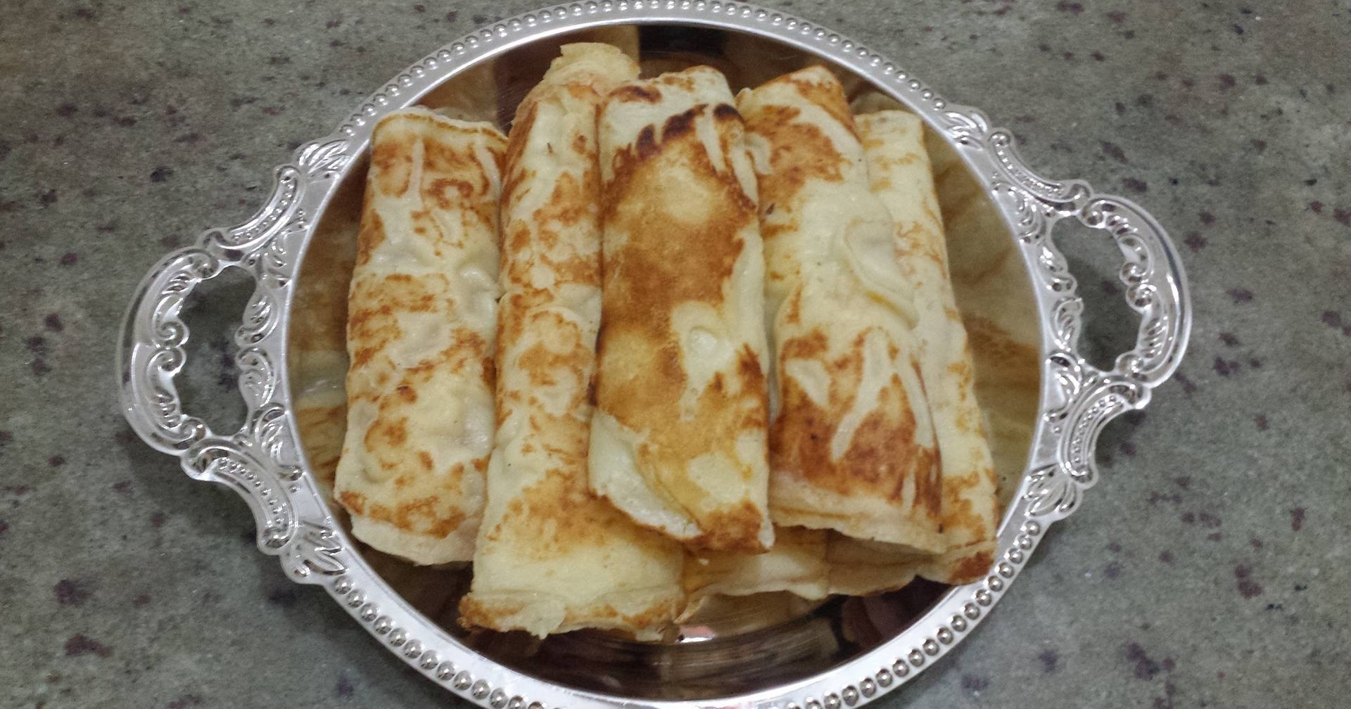 Pão de queijo frito em frigideira, enrolado e recheado.