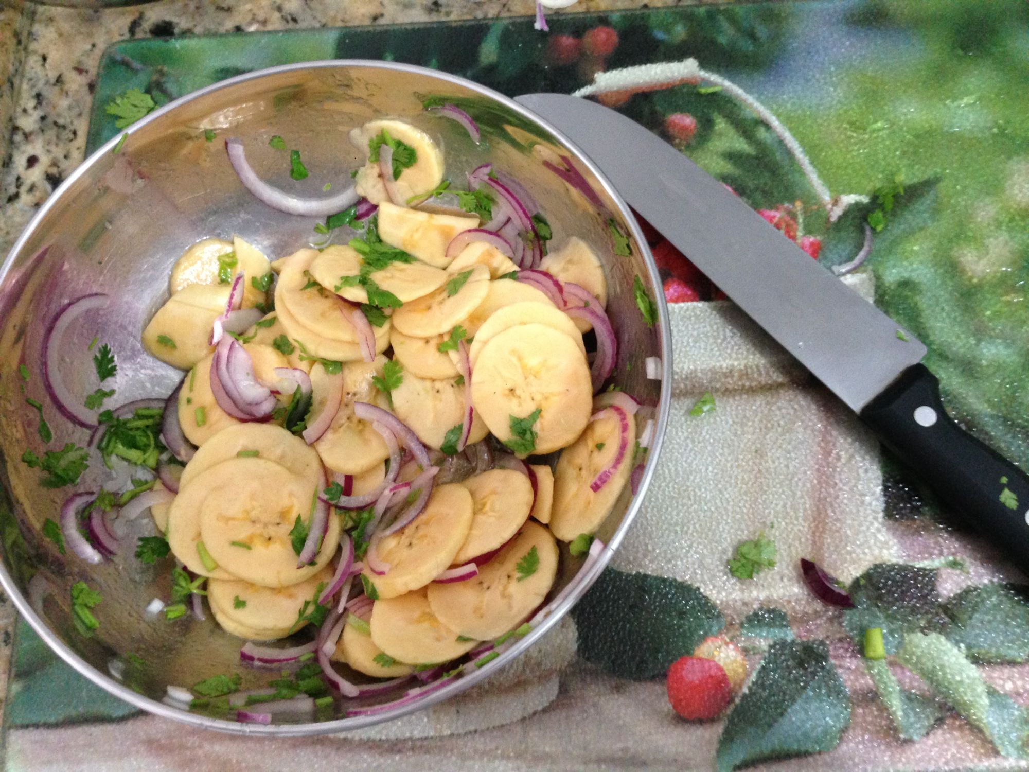 Quem não ama banana? Aqui em Salvador essa banana da terra é puro sucesso e pura saúde! Essa salada a qual chamo de "ceviche" devido ao fato dos ingredientes serem crus e marinados no limão ou qualquer outro cítrico.Vamos lá preparar essa delícia?