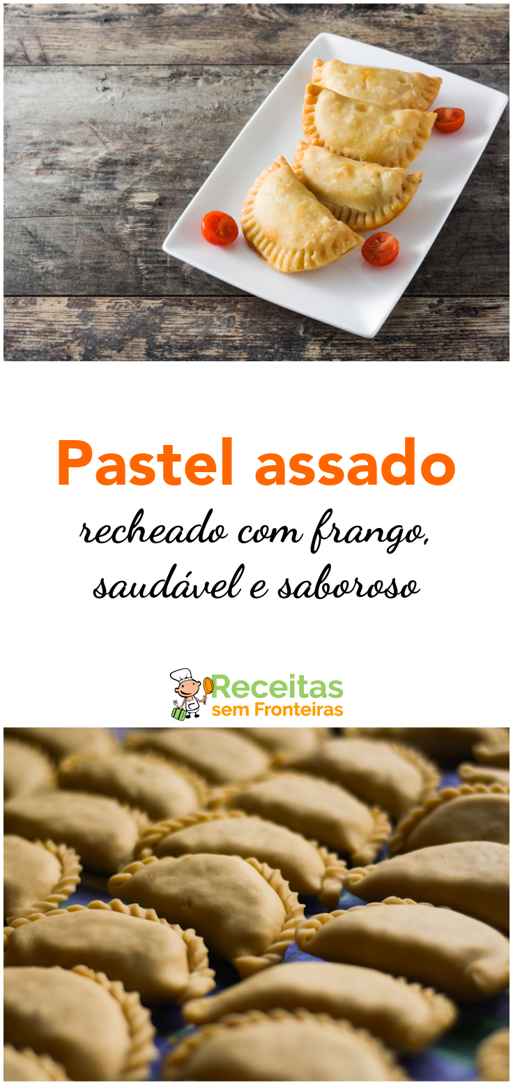 Com uma porção da massa, estique-a com um rolo e utilize copos,aros, do tamanho desejado para cortar curculos de massa, recheie o centro com o frango, feche a massa e com o auxilio de um garfo aperte as extremidades para não abrir na hora de assar.