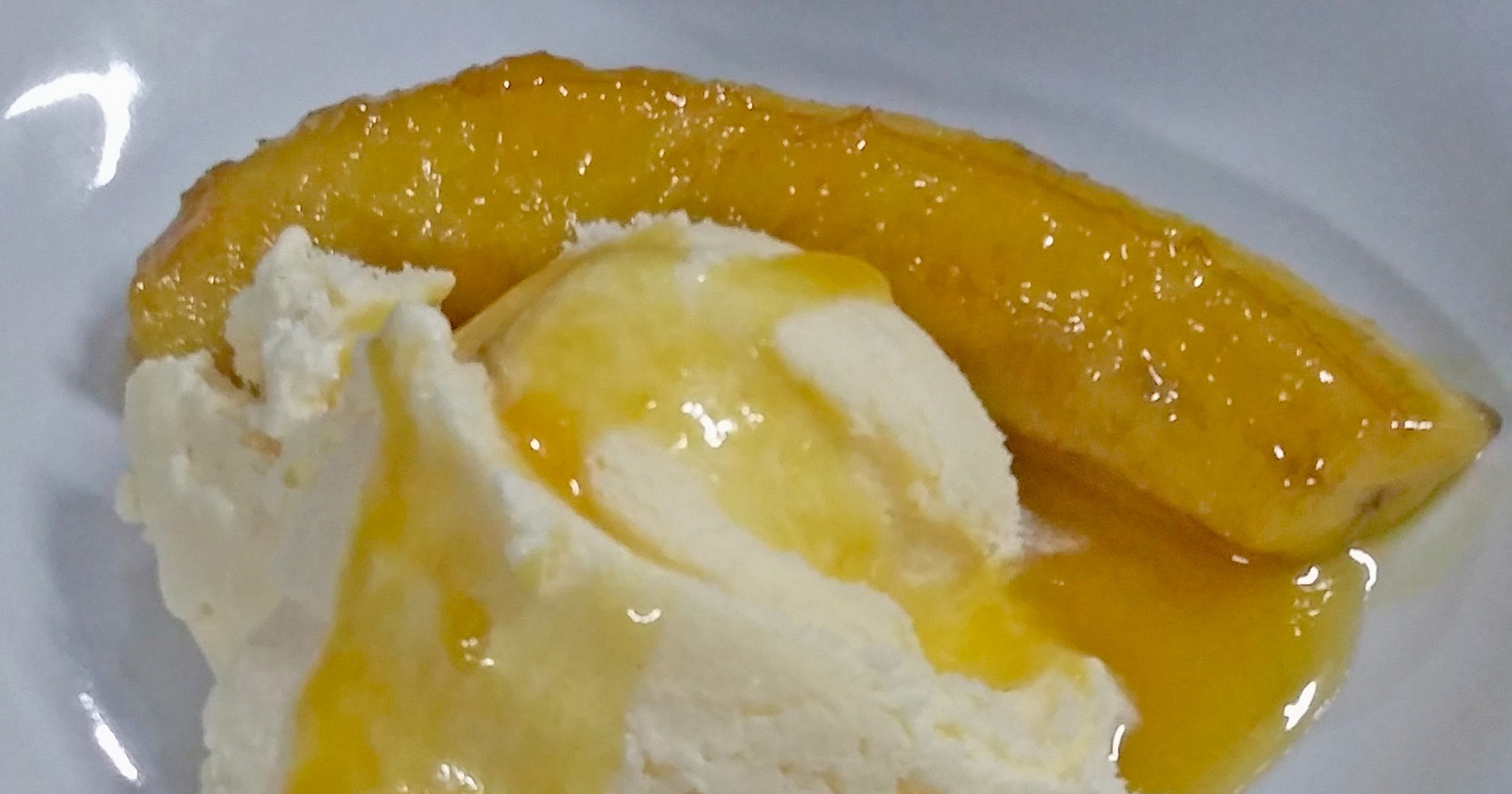 Uma delícia nesses dias mais frios ! Combina perfeitamente a calda quente com a refrescância do sorvete! Pode ser feito com abacaxi da mesma forma!