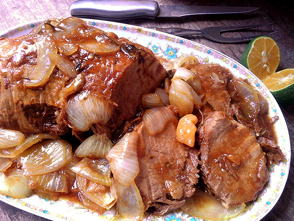 Pernil com cebola na panela de pressão