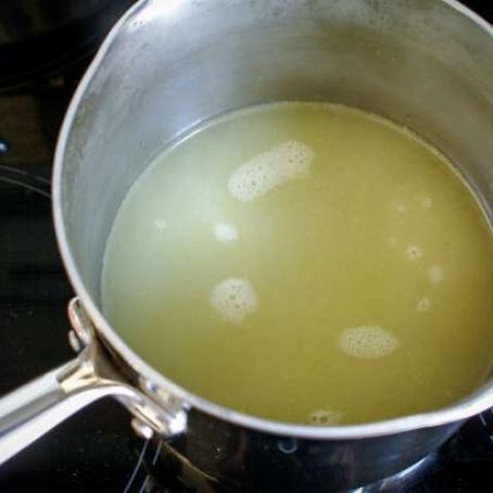 Derreta um pouco de manteiga em uma panela e refogue as espinhas e ossos. Não deixe dourar, somente refogue rapidamente.