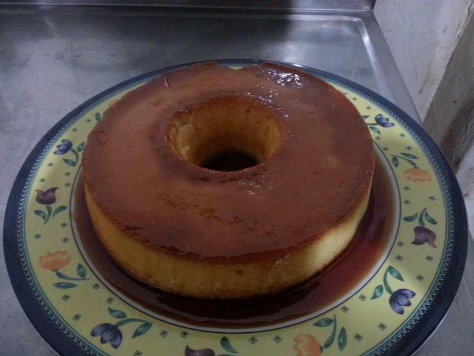 Despeje toda a mistura sobre a forma já caramelizada, asse em banho maria por 50min aproximadamente. Forno a 180°c