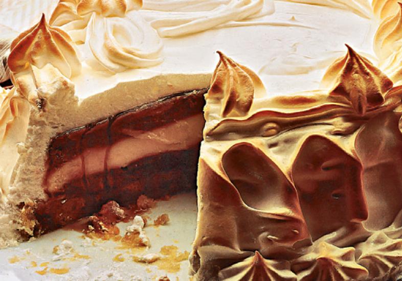 Cubra o bolo com uma camada de sorvete de creme e uma camada de sorvete de chocolate.