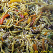 Yakisoba de carne, frango e legumes
