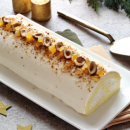Tronco de natal com creme de avelãs, praliné e laranjas confitadas