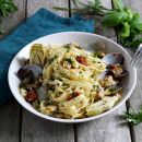 Tagliatelle ao vôngole com molho de vinho branco e tomate seco